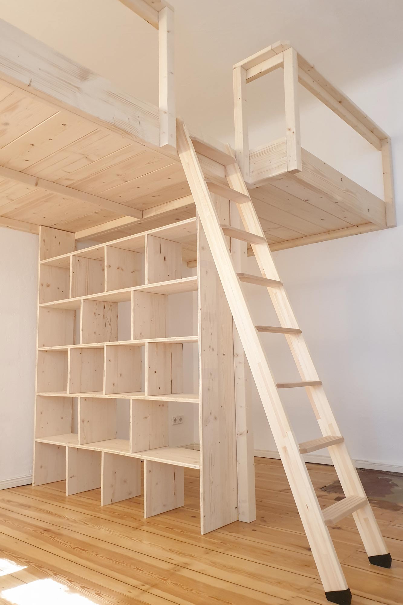 Egal ob mehr Platz für die wachsende Familie, Raum für Hobbys oder einen Arbeitsbereich für's Homeoffice: Statt ungeeigneter und liebloser Fertiglösungen passen wir das Hochbett oder die Hochebene genau auf deine Bedürfnisse und Gegebenheiten an.